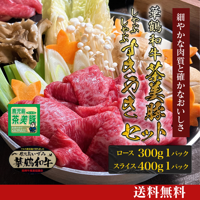 華鶴和牛・茶美豚 すきやき・しゃぶしゃぶセット [M-004]
